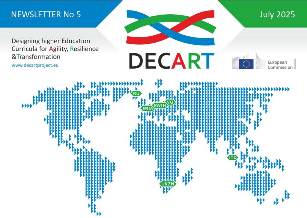 The DECART project is an international collaboration funded by the European Commission’s ERASMUS+ programme, aiming to design innovative and resilient higher education curricula in engineering and business. The project held its fifth meeting in January 2025 at the University of KwaZulu-Natal (UKZN) in South Africa, focusing on curriculum transformation and leadership in a complex global environment. This meeting highlighted intercontinental collaboration, integrating African and European approaches to enhance education reform. The project utilizes a “curriculum canvas” for design, a self-assessment questionnaire, and a Serious Game to simulate real-world challenges, with the final project meetings scheduled for July 2025 in Vilnius.