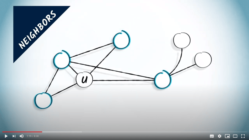 Nous définissons les voisins de $u$ dans $G$ comme l’ensemble des sommets $v$ tels que $\{u,v\}$ appartient à $E$.