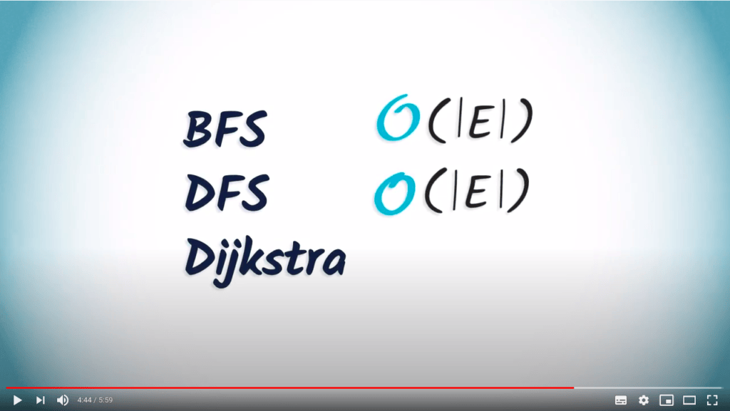 Mettons cela en contexte avec les algorithmes que nous avons vus jusqu’à présent. Les algorithmes DFS et BFS examinent chacun des sommets d’un graphe une fois, et pour chaque sommet, ils considèrent tous ses voisins.