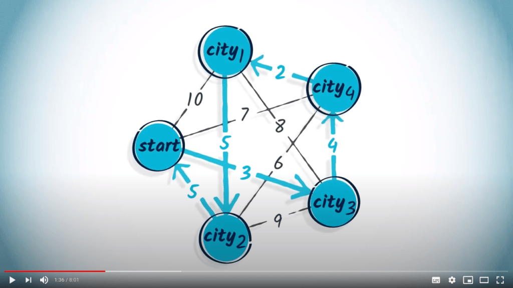 Dans le cours d’aujourd’hui, vous allez découvrir le problème du voyageur de commerce, qui est probablement l’un des problèmes les plus connus en informatique. Il est également souvent utilisé comme premier exemple de problème NP-complet, ce qui signifie que nous n’avons pas encore identifié d’algorithme de résolution rapide.