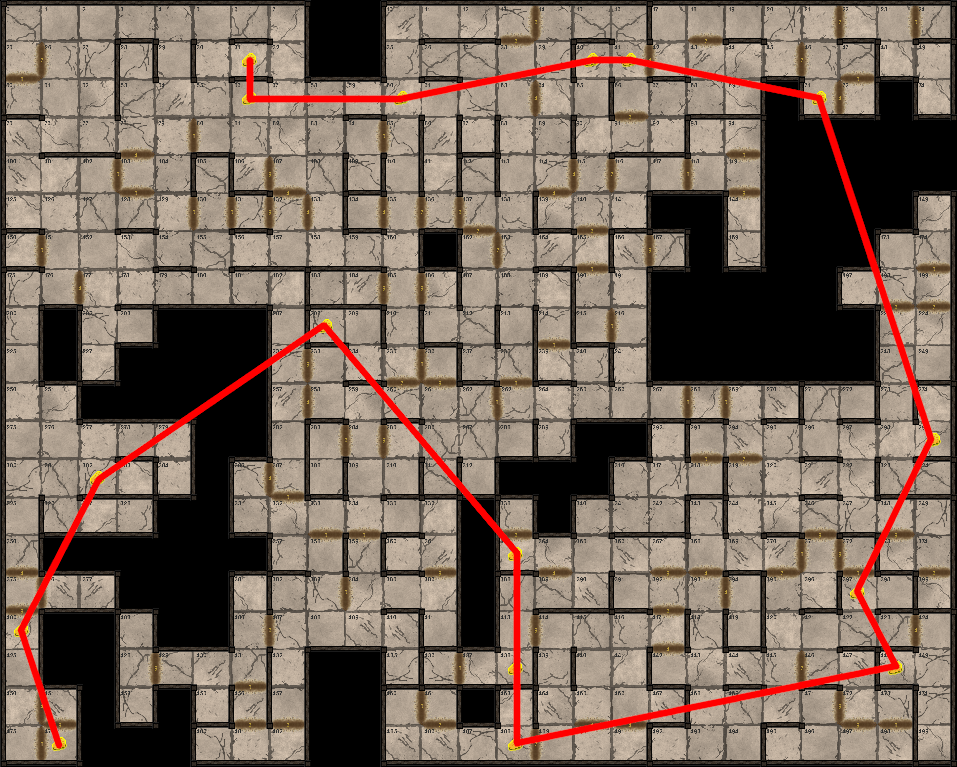 Cependant, il reste encore des possibilités d’amélioration avec des algorithmes exacts. En effet, nous pouvons facilement penser à des améliorations simples. Par exemple, c’est probablement une mauvaise décision de faire des allers-retours dans le labyrinthe comme suit :