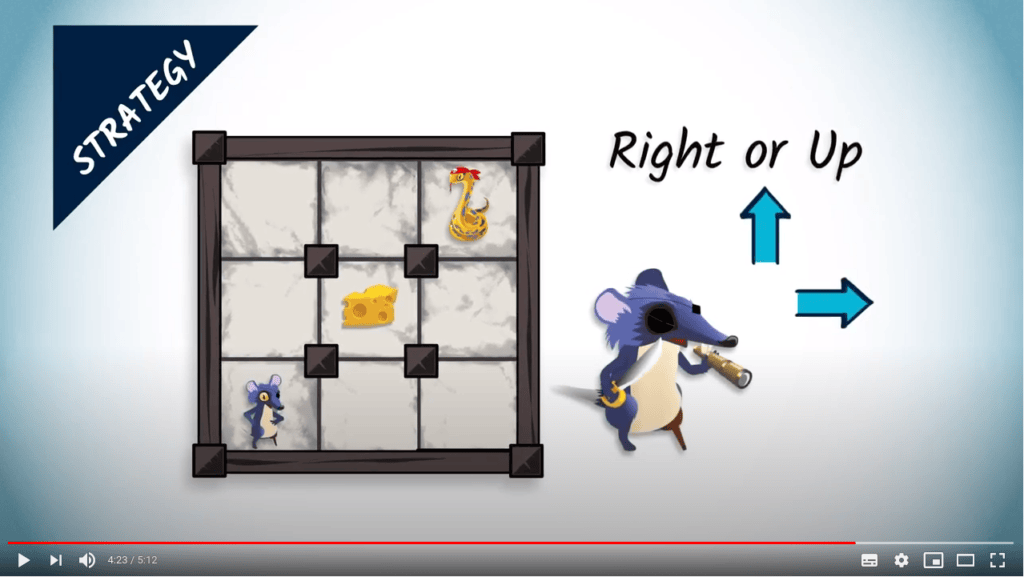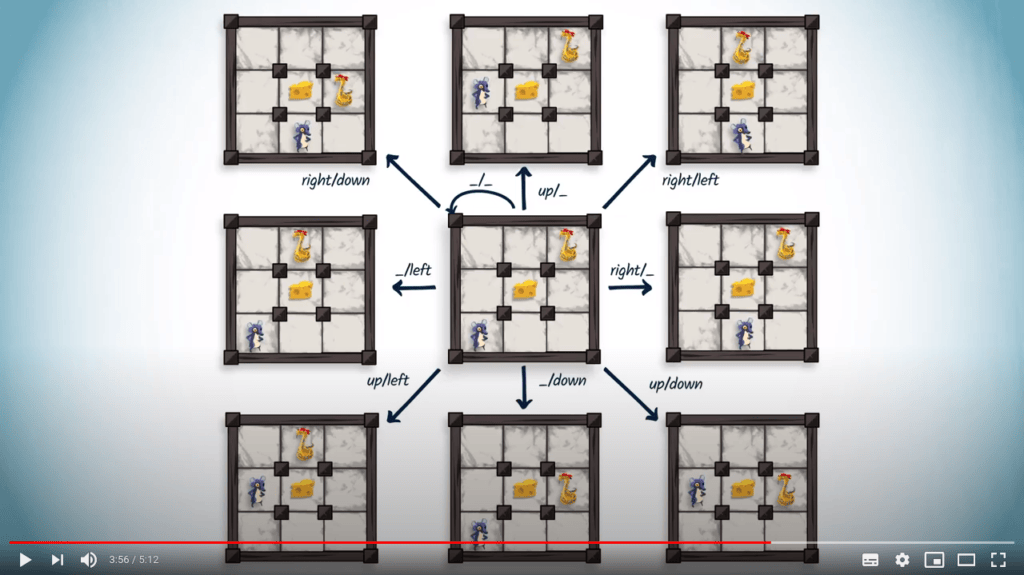 PyRat est également un jeu à “information parfaite”, car toutes les informations sur le plateau, toutes les décisions possibles qui peuvent être prises (et les gains qui en résulteraient), ainsi que l’objectif du jeu, sont connus de tous les joueurs.