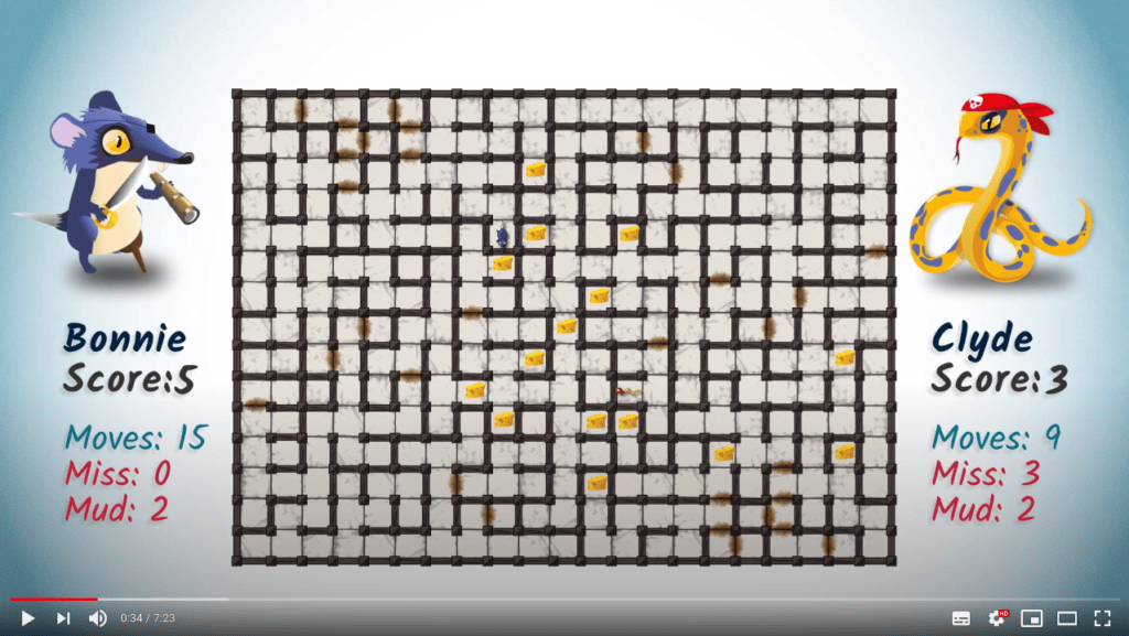 Comme vous le savez, PyRat est un jeu à deux joueurs entre un rat et un python, où chaque joueur doit naviguer dans un labyrinthe pour trouver des morceaux de fromage cachés dans le labyrinthe.